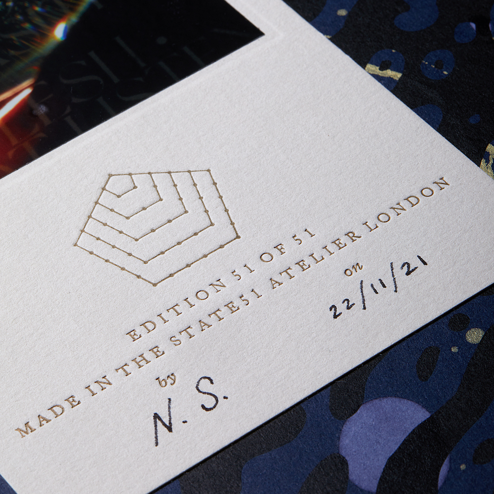 Editions 1-50 come in a hand made sleeve foil-stamped with the edition number and finished with book cloth taped edges and a letter-pressed plate featuring original artwork and maker information.