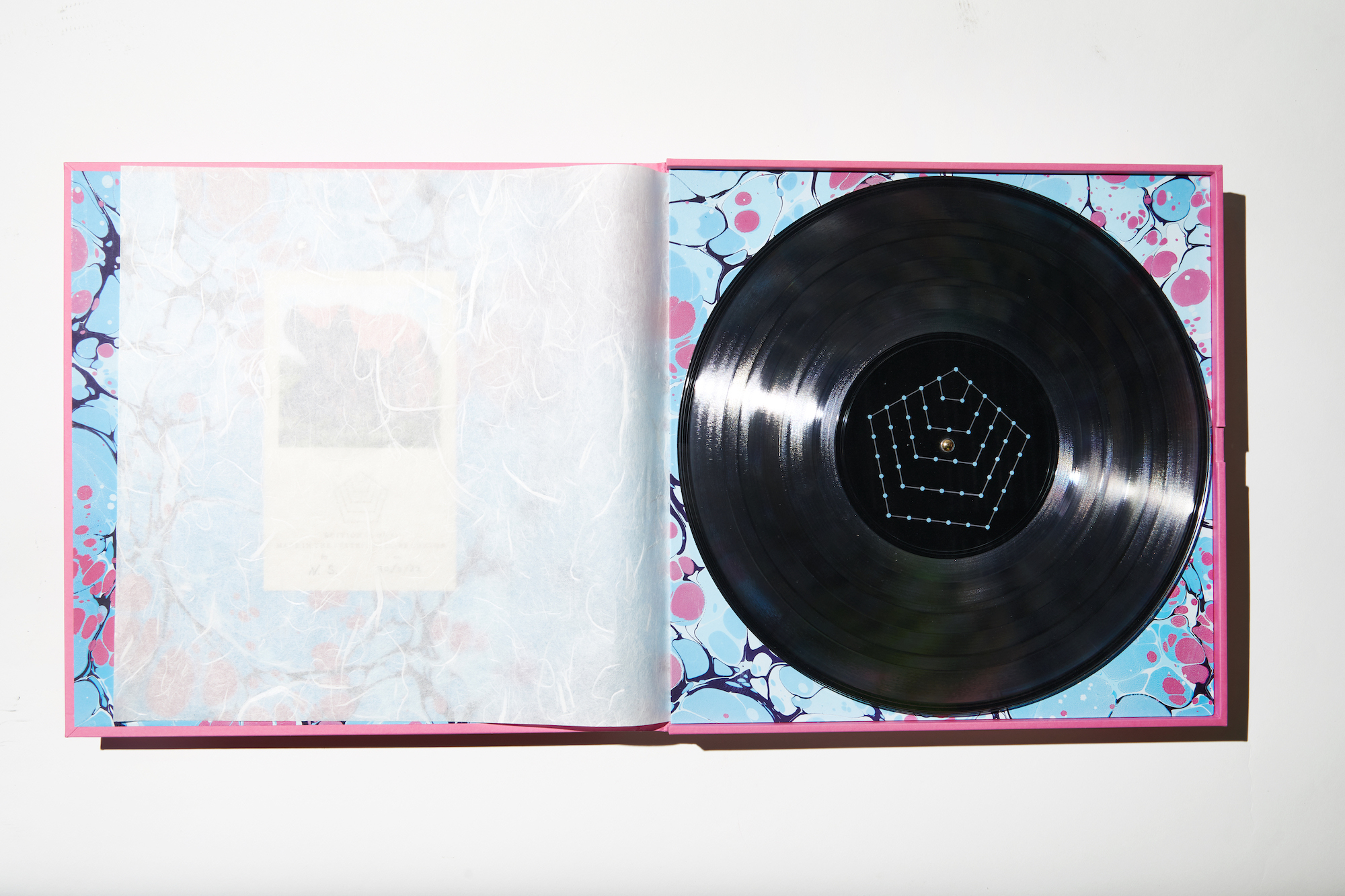 The sleeves are handmade in the state51 Atelier and are finished with book cloth-taped edges and a letter-pressed plate featuring artwork and maker info. This edition comes with an riso print of the original artwork.